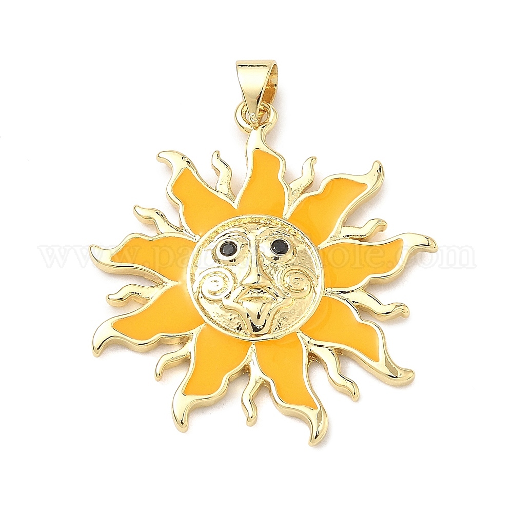 Латунные микро проложить кубического циркония подвески, солнечные чары, с эмалью, долговечный, стойки покрытие, без свинца и без кадмия