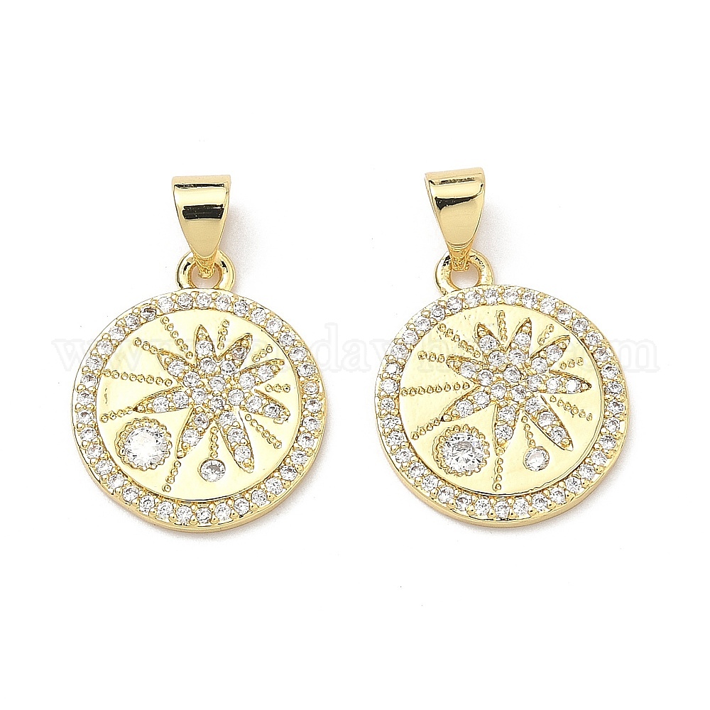 Латунные микро проложить кубического циркония подвески, плоский круглый с цветными чарами, долговечный, стойки покрытие, без свинца и без кадмия