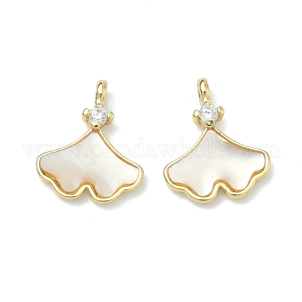 Латунные микропаве прозрачные кубические циркониевые подвески, лист прелести, с естественной оболочке, без свинца и без кадмия, стойки покрытие, долговечный