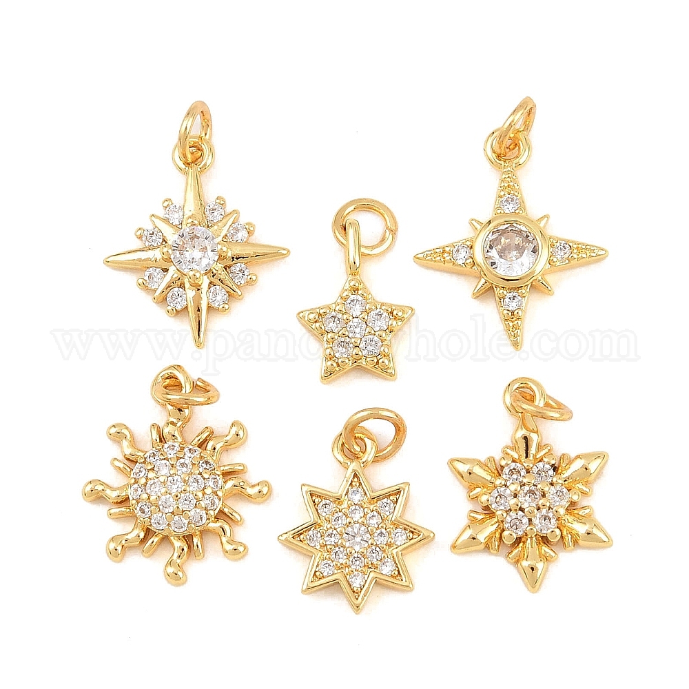 Латунные микро проложить кубического циркония прелести, амулеты в виде звезды/снежинки/солнца, без свинца и без кадмия, стойки покрытие, долговечный
