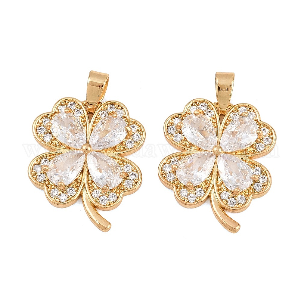 Латунные микропаве прозрачные подвески с фианитом, клевер амулеты