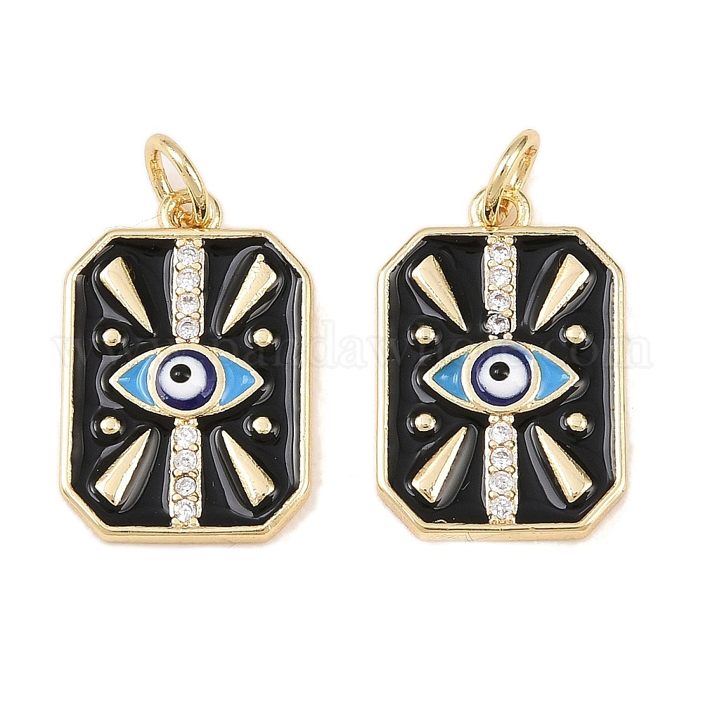 Латунные микро проложить кубического циркония подвески, прямоугольник с оберегами от сглаза, с эмалью, стойки покрытие, долговечный, без кадмия и без свинца