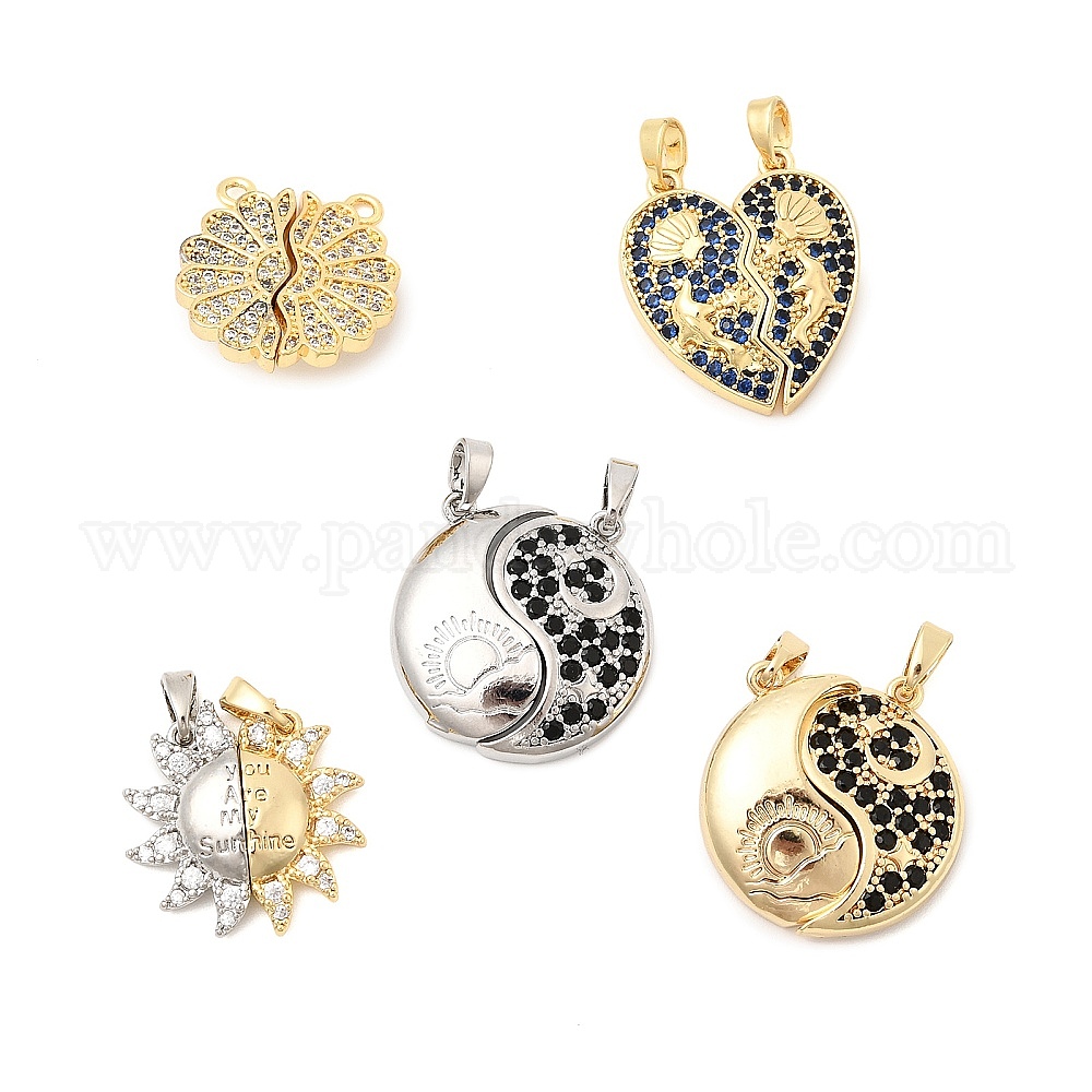 Подвески из латуни с микропаве из кубического циркония ко Дню святого Валентина, с магнитным