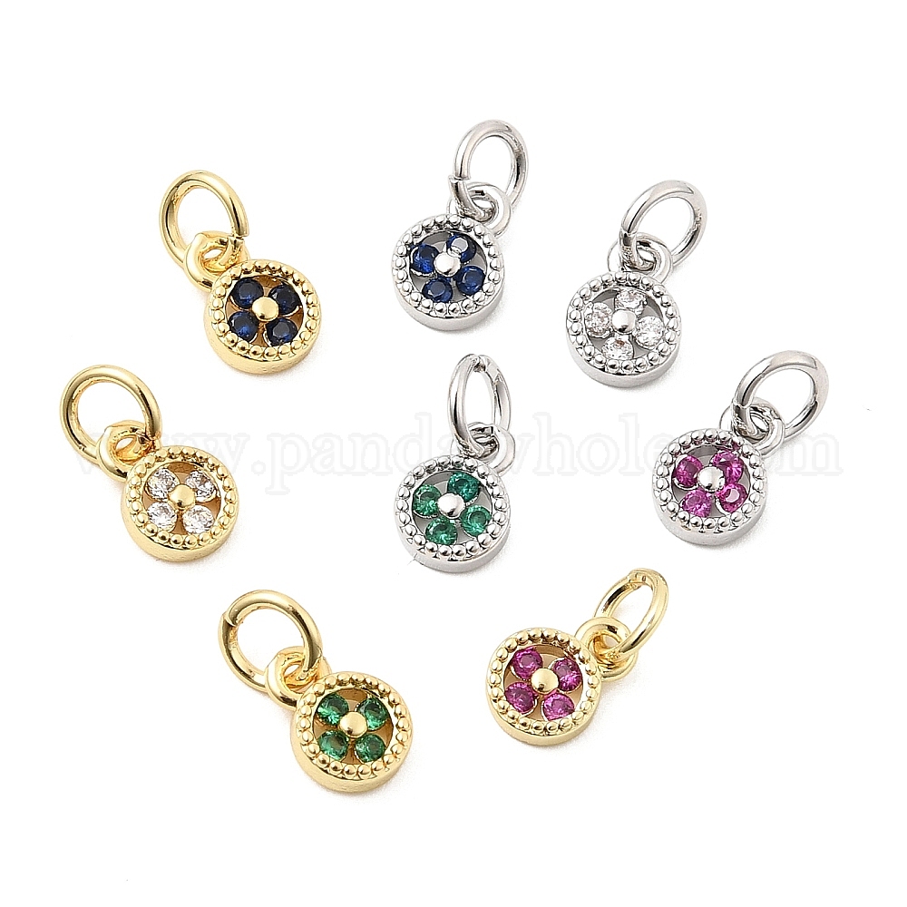 Латунные микро проложить кубического циркония подвески, плоский круг с подвеской в виде клевера, без свинца и без кадмия, долговечный, стойки покрытие