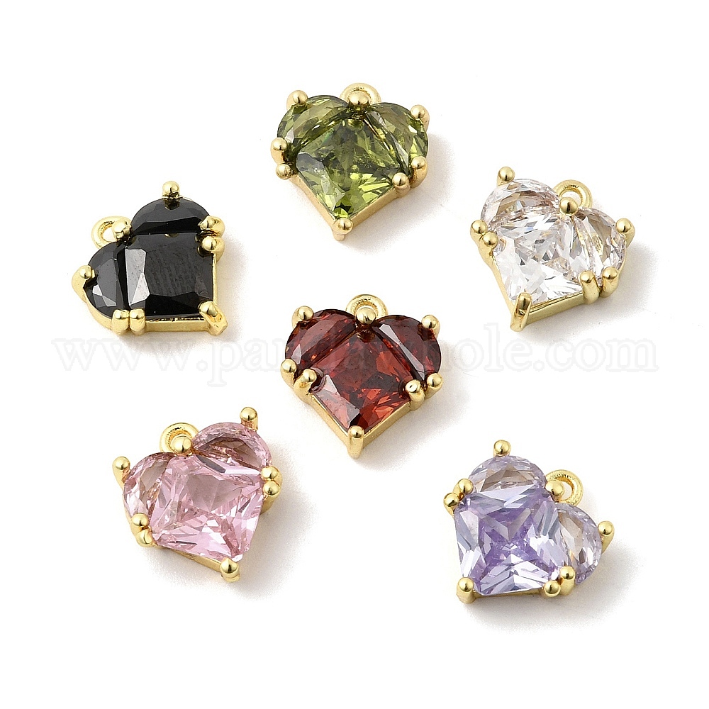 Латунные подвески в форме сердца, инкрустированные кубическим цирконием