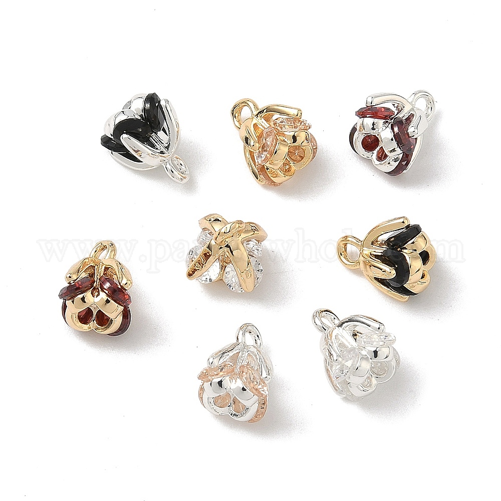 • Прозрачный Подвески в виде цветка из кубического циркония, инкрустированные латунью., реальный 18 k позолоченный, прозрачные, 8x7 мм, отверстие : 1.3 мм