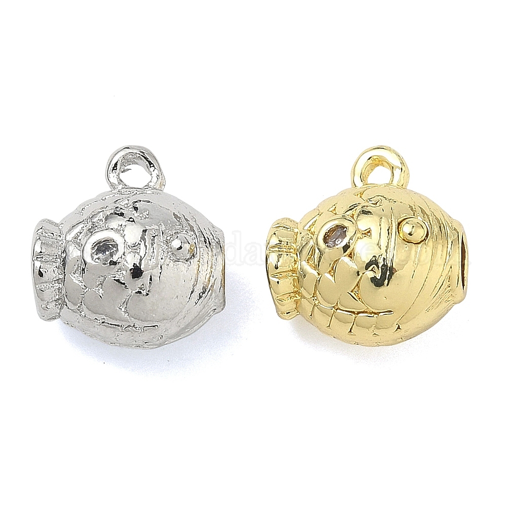Латунные микропаве прозрачные подвески с фианитом, рыбы прелести, без кадмия и без свинца, долговечный, стойки покрытие