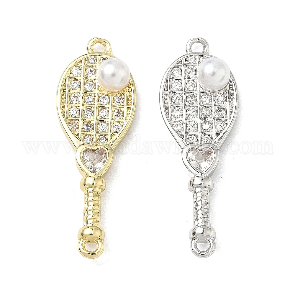 Латунные микропаве прозрачные подвески с фианитом, прелести ракетки, с абс пластмассовой имитационной жемчужиной, без кадмия и без свинца, долговечный, стойки покрытие