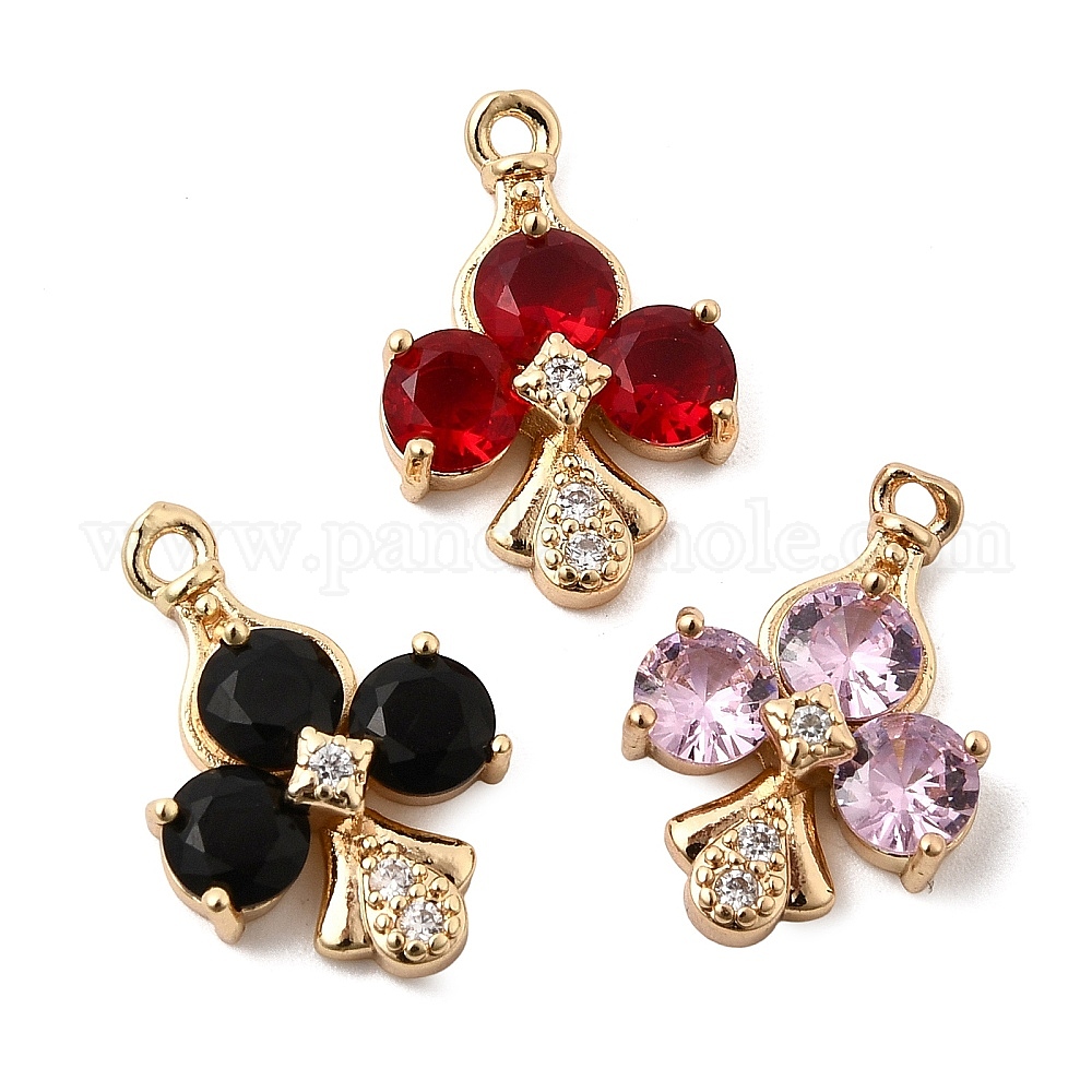Латунные микро проложить кубического циркония подвески, игральная карта с подвесками в виде треф, со стеклом, долговечный, золотые