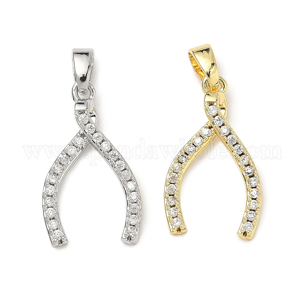 Латунные микропаве прозрачные подвески с фианитом, подвески в виде вилочки