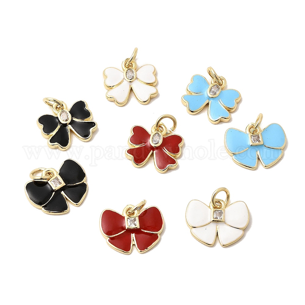 Латунные подвески из прозрачного кубического циркония, с эмалью, без свинца и без кадмия, долговечный, очарование бантом