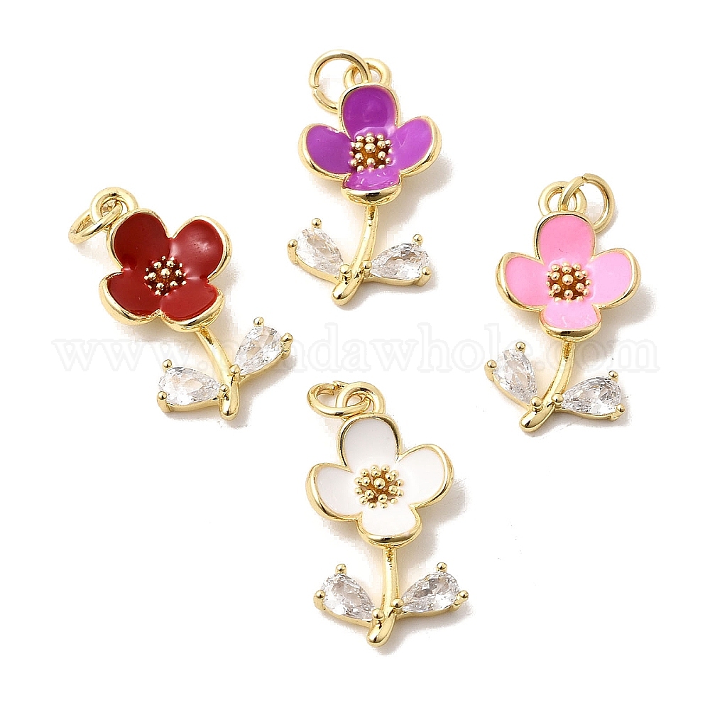 Подвески из латуни с прозрачным фианитом, с эмалью, без свинца и без кадмия, долговечный, цветочный шарм