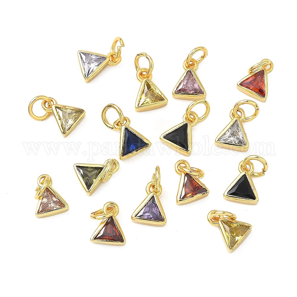 Латунные микро проложить кубического циркония подвески, треугольник прелести, реальный 18 k позолоченный