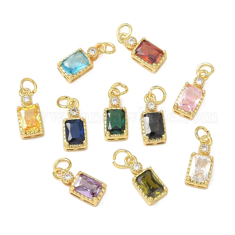 Латунные микро проложить кубического циркония подвески, прямоугольник амулеты, реальный 18 k позолоченный
