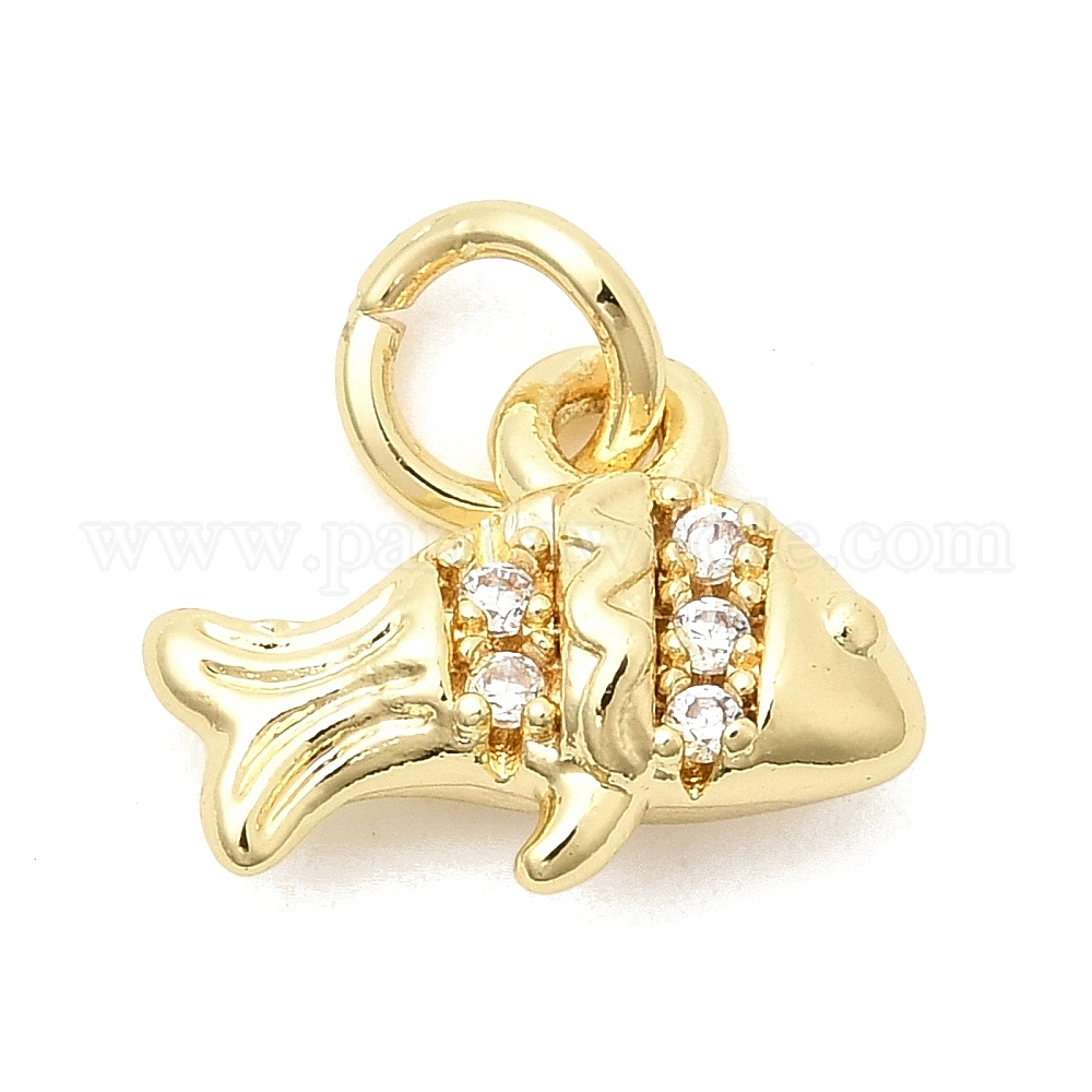 Подвески из латуни с прозрачным фианитом, без свинца и без кадмия, долговечный, рыбы прелести