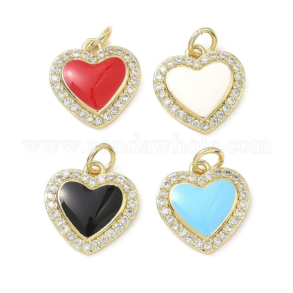 Латунные микропаве прозрачные подвески с фианитом, с эмалью, долговечный, стойки покрытие, без свинца и без кадмия, сердце прелести, реальный 18 k позолоченный