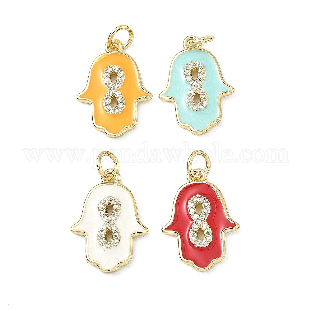 Латунные микро проложить кубического циркония подвески, с эмалью, долговечный, стойки покрытие, без свинца и без кадмия, hamsa hand charms, реальный 18 k позолоченный