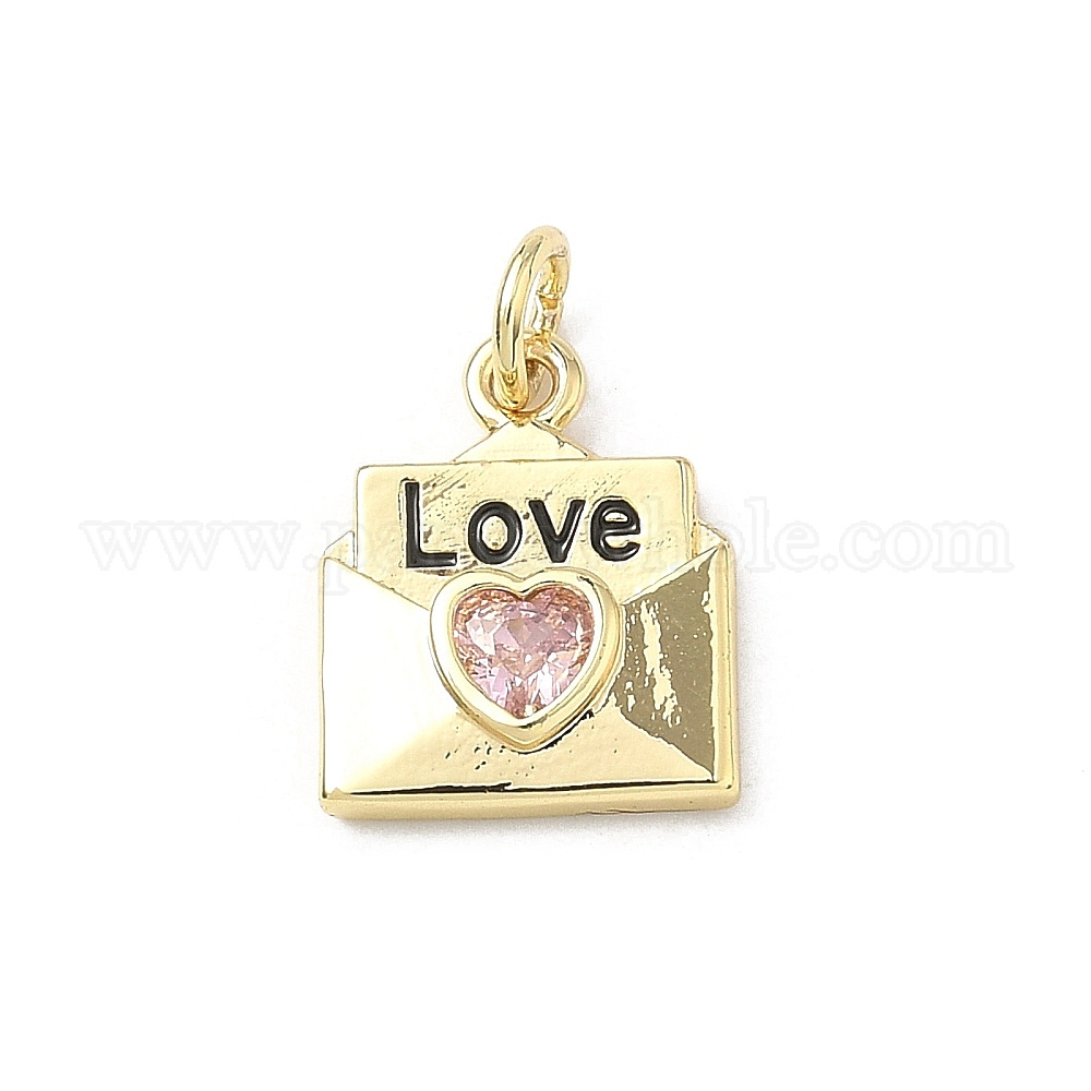 Латунные микро проложить кубического циркония прелести, с эмалью, долговечный, стойки покрытие, без свинца и без кадмия, конверт с подвесками со словом «любовь»