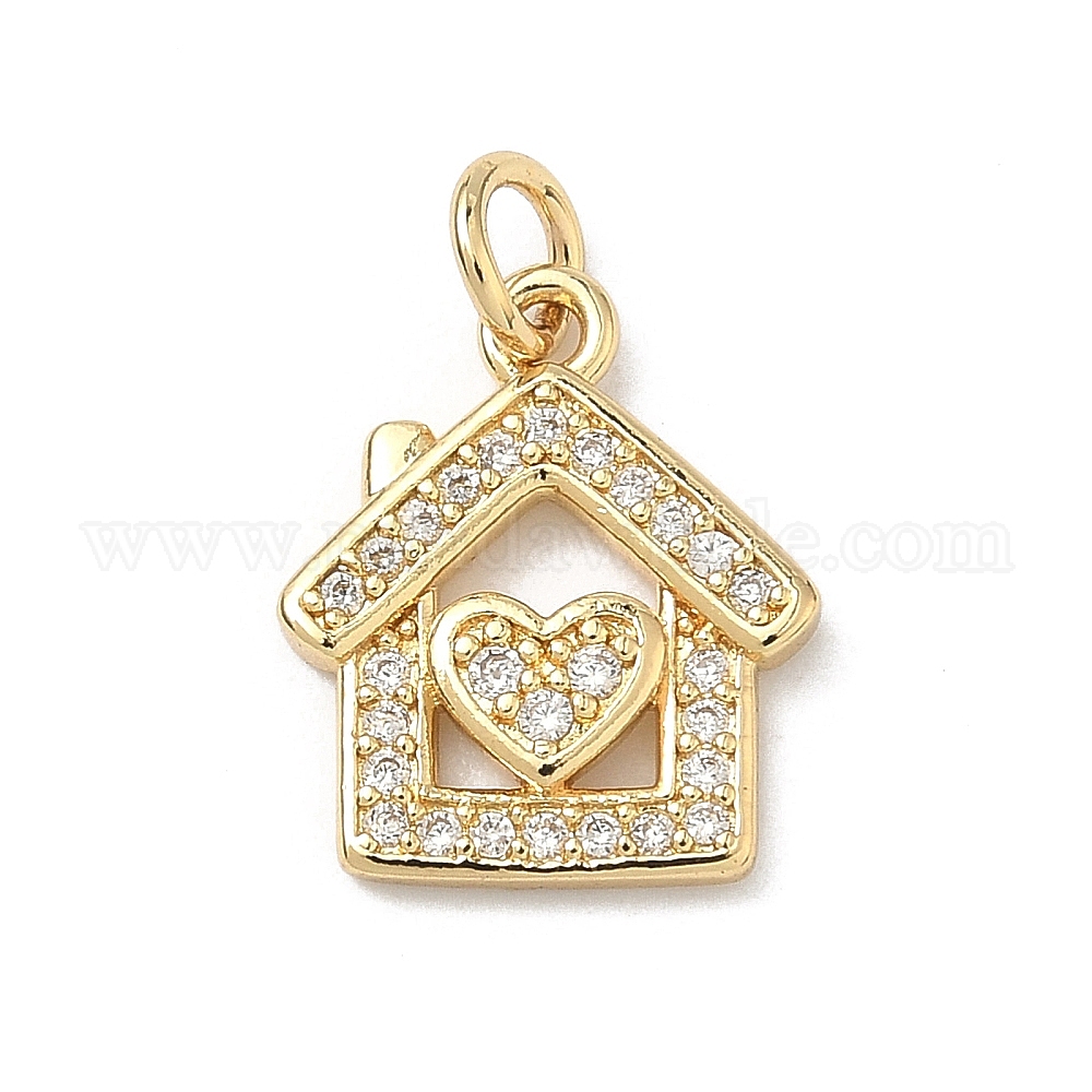 Латунные микропаве прозрачные подвески с фианитом, прелести дома, долговечный, стойки покрытие, без свинца и без кадмия