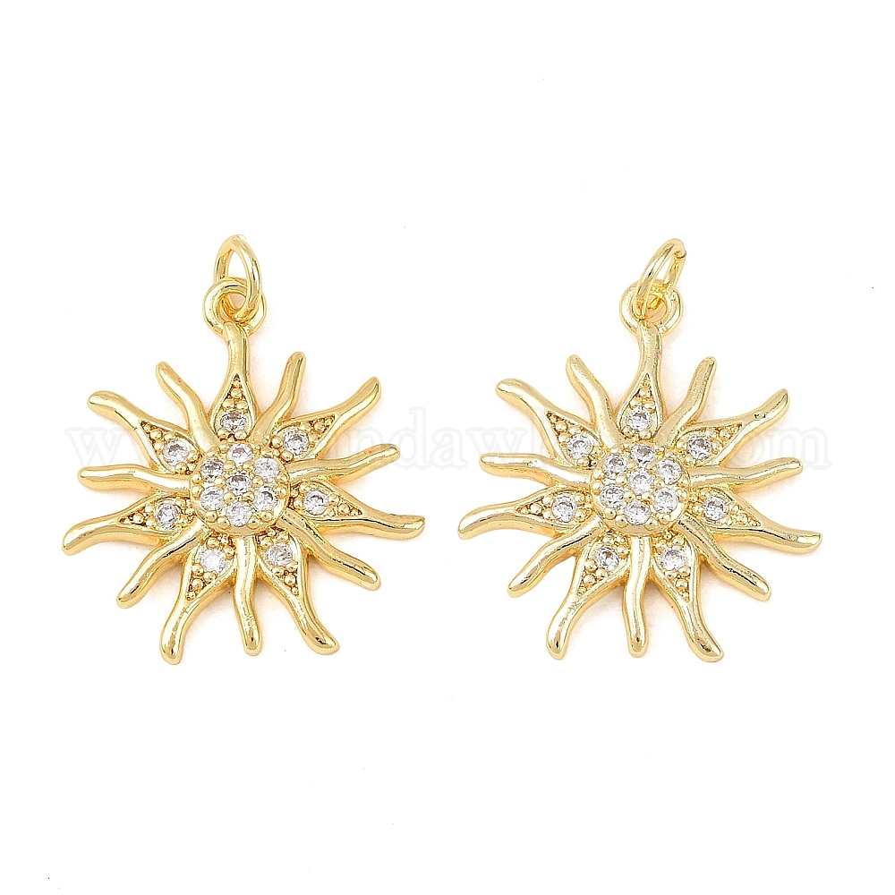 Латунные микропаве прозрачные подвески с фианитом, солнечные чары, долговечный, стойки покрытие, без свинца и без кадмия