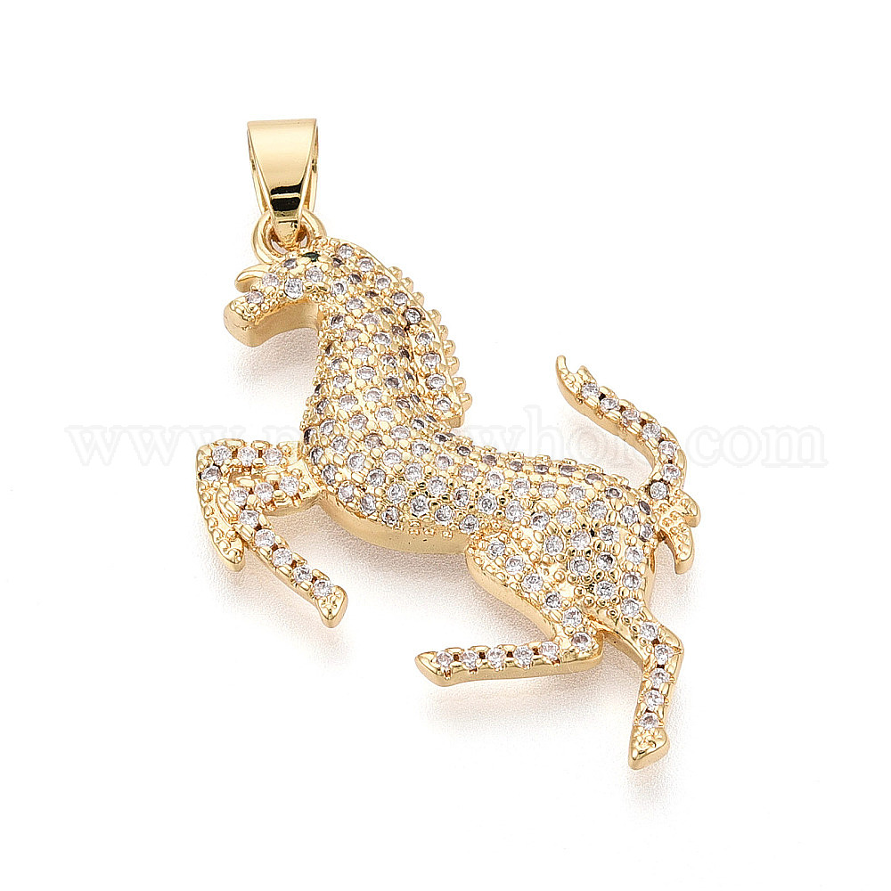 • Настоящее золото 18K Латунные микропаве прозрачные подвески с фианитом, лошади прелести, реальный 18 k позолоченный, 30x26.5x4.5 мм, отверстие : 4x6.5 мм