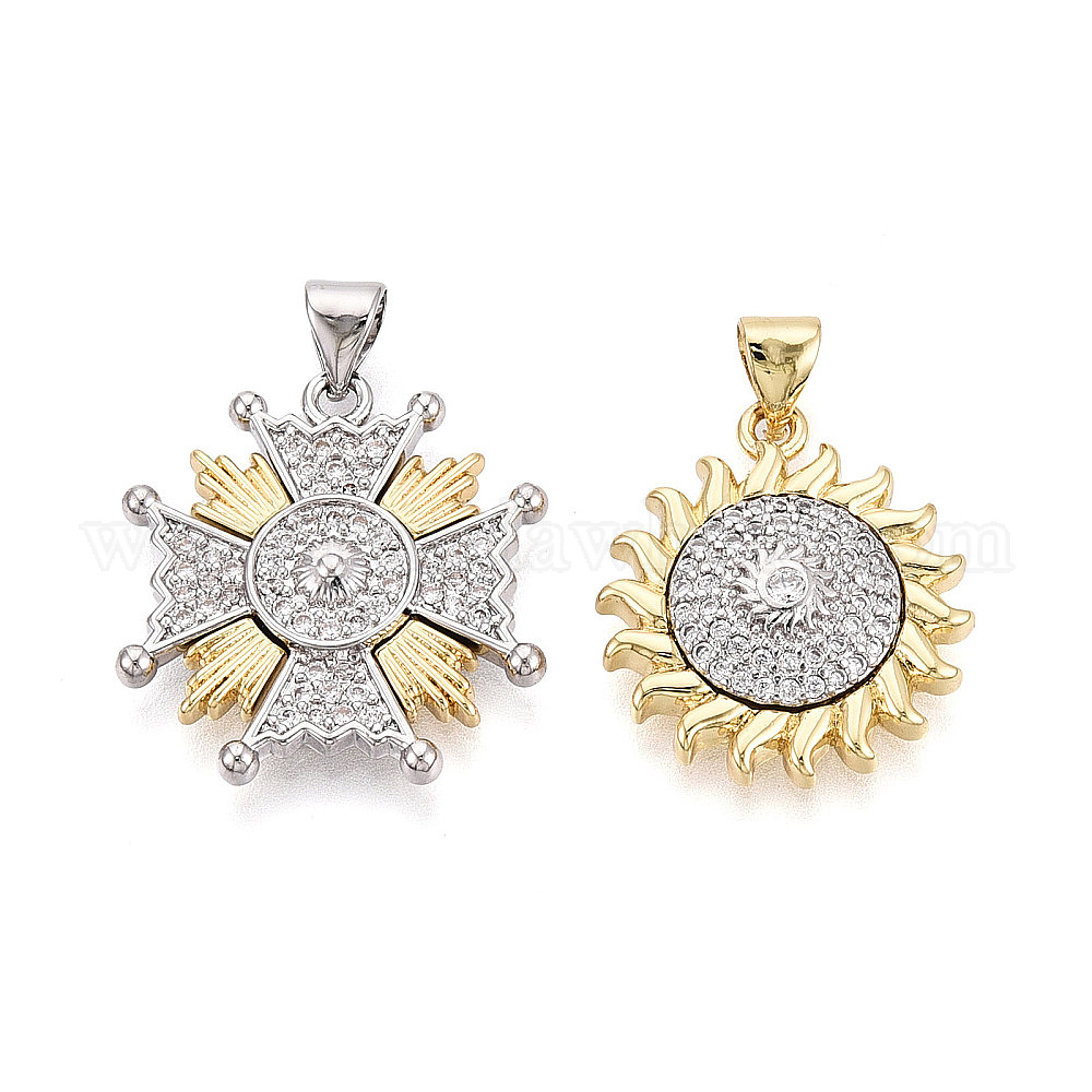 Латунные микропаве прозрачные подвески с фианитом, реальный 18 k позолоченный