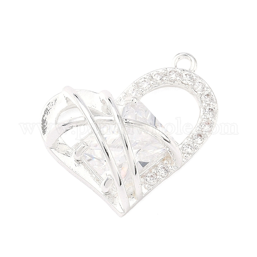 Латунные микропаве прозрачные подвески с фианитом, сердце прелести