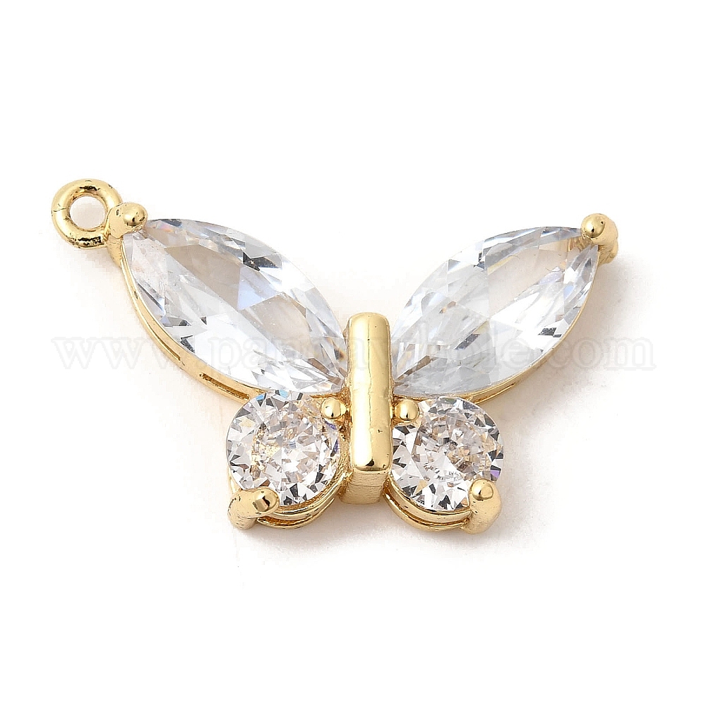 Латунные микропаве прозрачные подвески с фианитом, со стеклом, бабочки прелести, долговечный, стойки покрытие, без свинца и без кадмия
