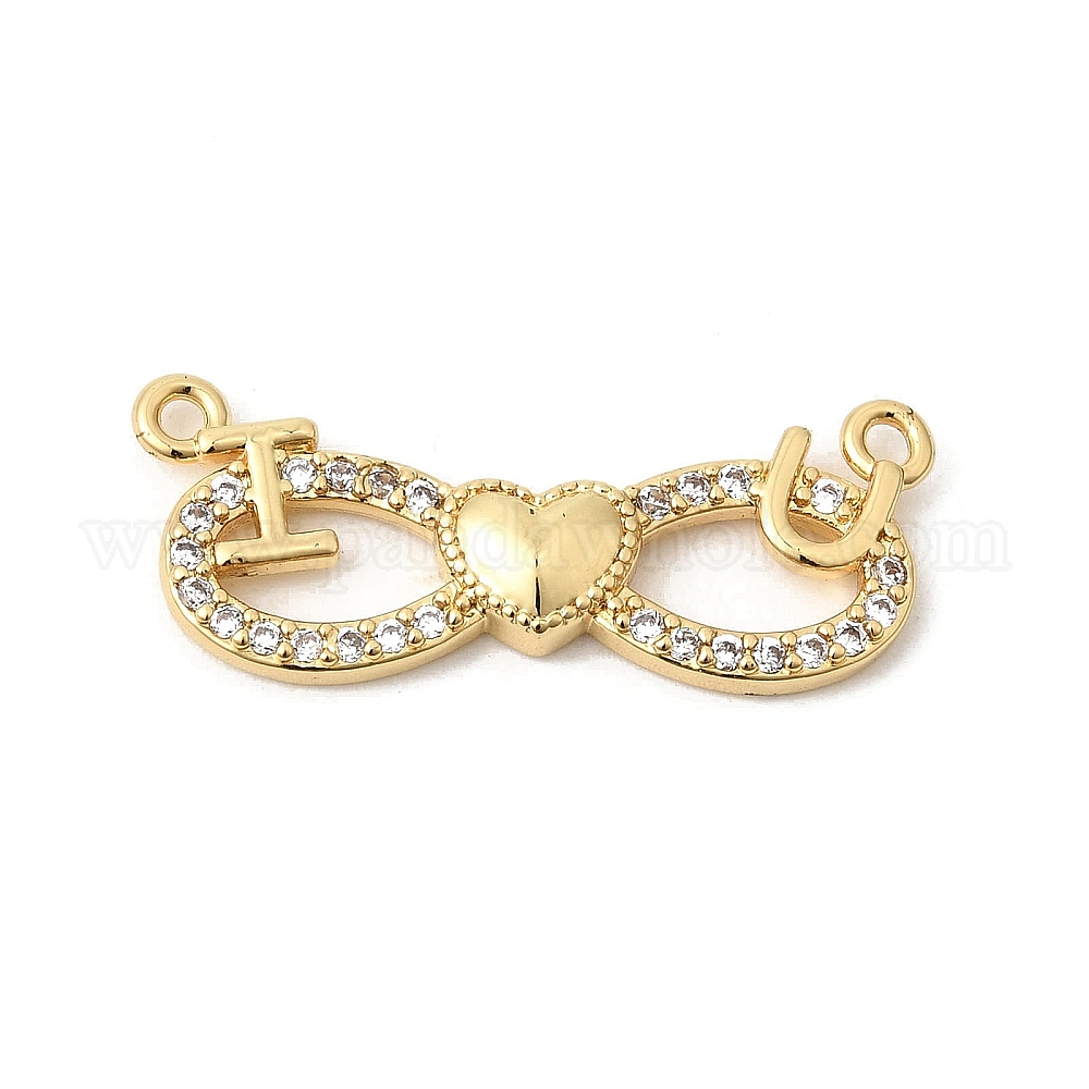 • Настоящее золото 18K Латунные микропаве прозрачные подвески с фианитом, бесконечность с сердечками, долговечный, стойки покрытие, без свинца и без кадмия, реальный 18 k позолоченный, 10.5x26.5x3 мм, Отверстие : 1.2 мм & 1.4 мм