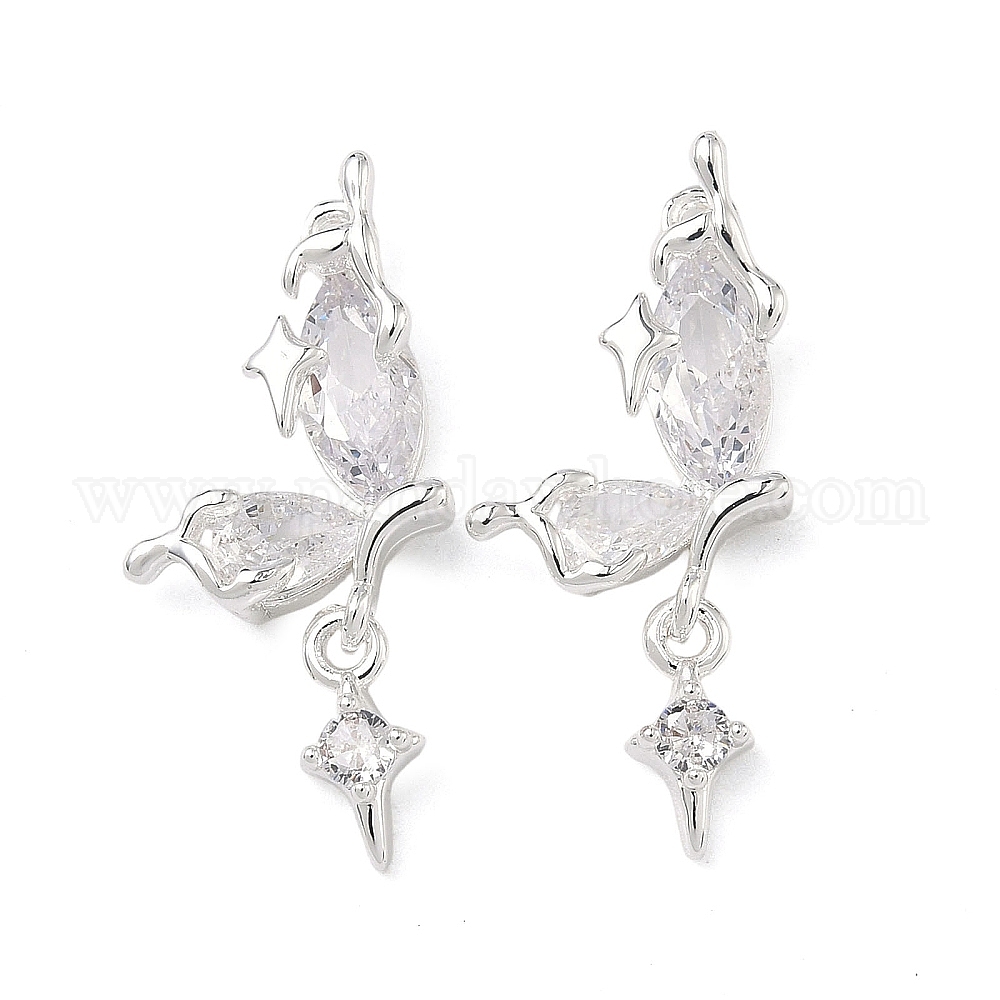 • Посеребрённый Подвески из латуни с прозрачным фианитом, звезды прелести, 925 серебро покрытием, 28.5x13x4 мм, отверстие : 1.4 мм