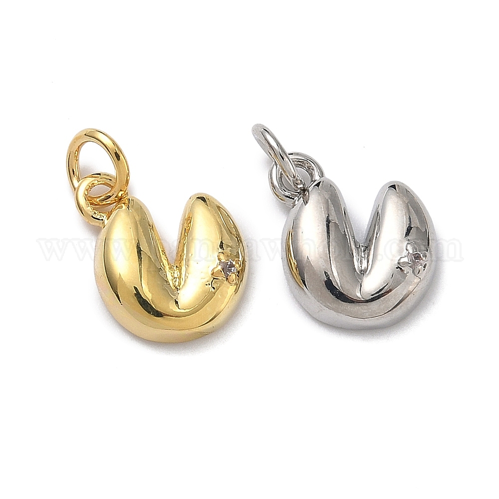 Подвески в виде сердца из печенья с предсказаниями, инкрустированные прозрачными кубическими циркониями, из латуни., долговечный, стойки покрытие, без свинца и без кадмия (03A8GD)