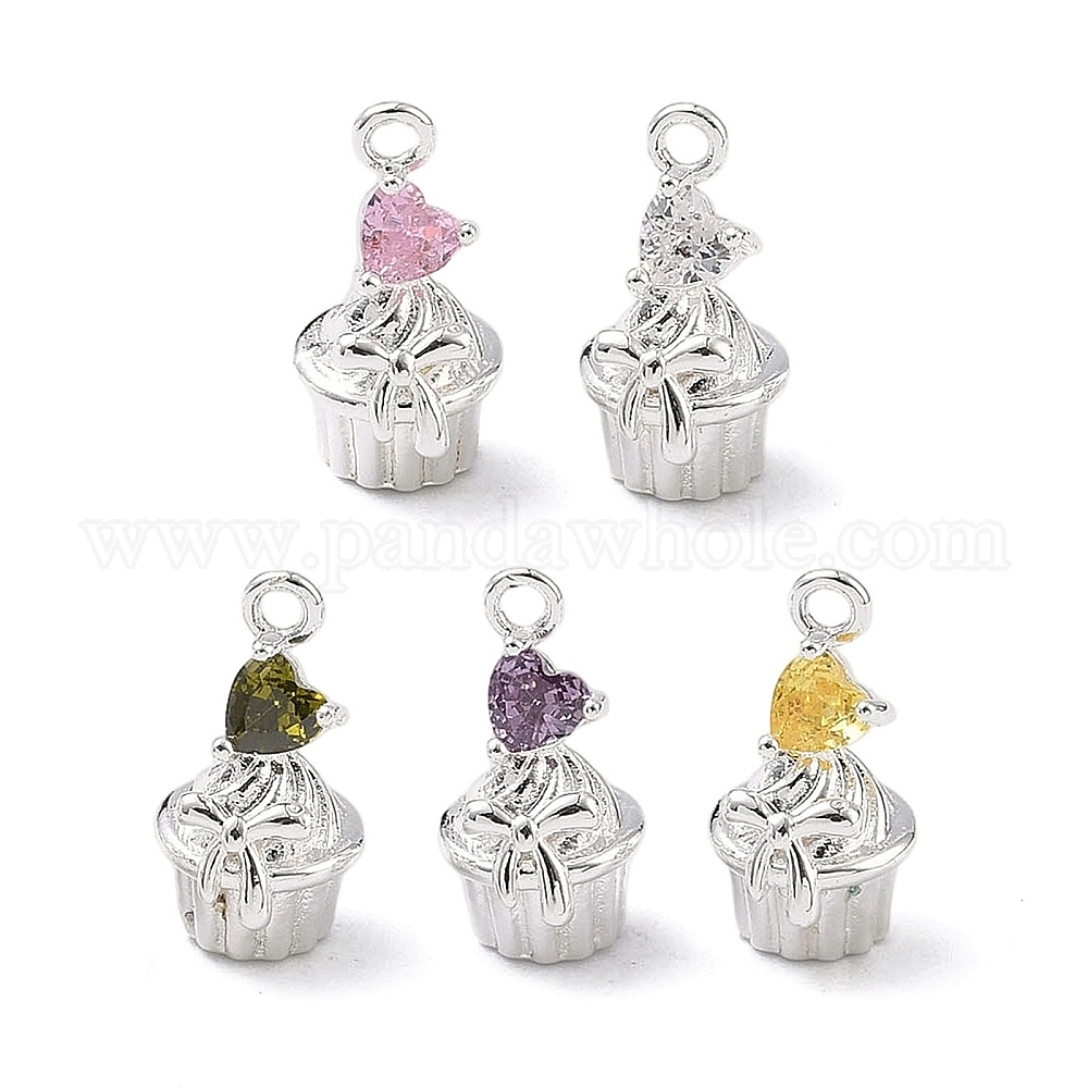 Латунный кекс с инкрустацией кубическим цирконием и подвесками в виде сердечек., 925 серебро покрытием