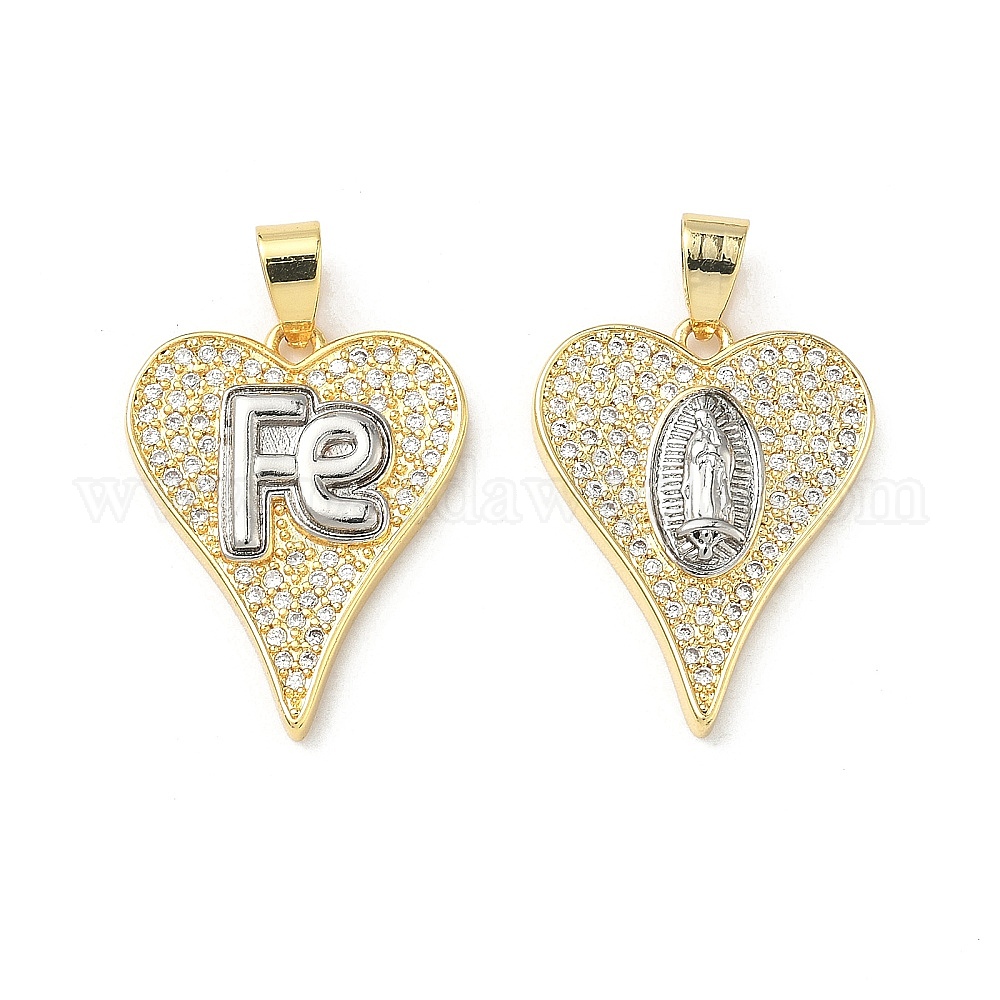 • Human Латунные микропаве прозрачные подвески с фианитом, сердце с подвесками Девы Марии, человек, 26x20.5x3.5 мм, отверстие : 6.5x4.5 мм