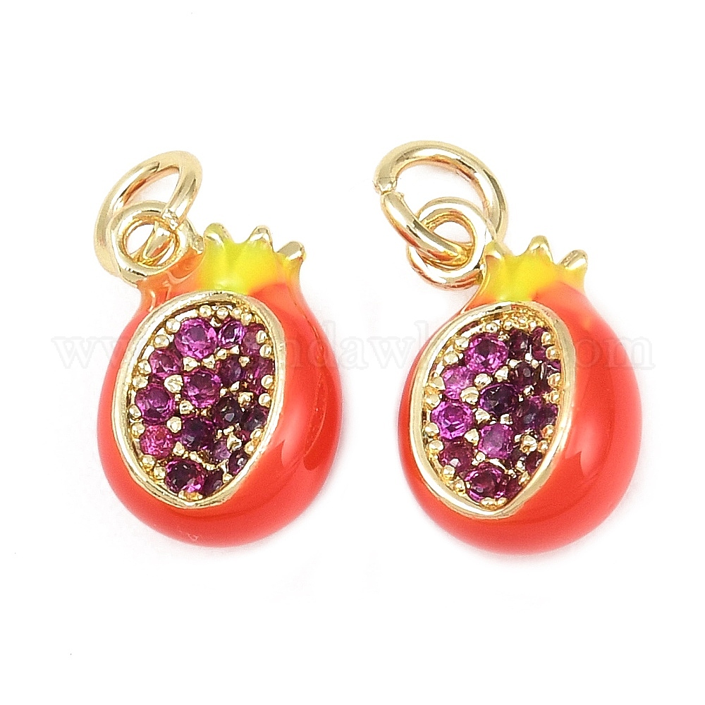 Латунные микро проложить кубического циркония прелести, с эмалью, гранатовые прелести, реальный 18 k позолоченный