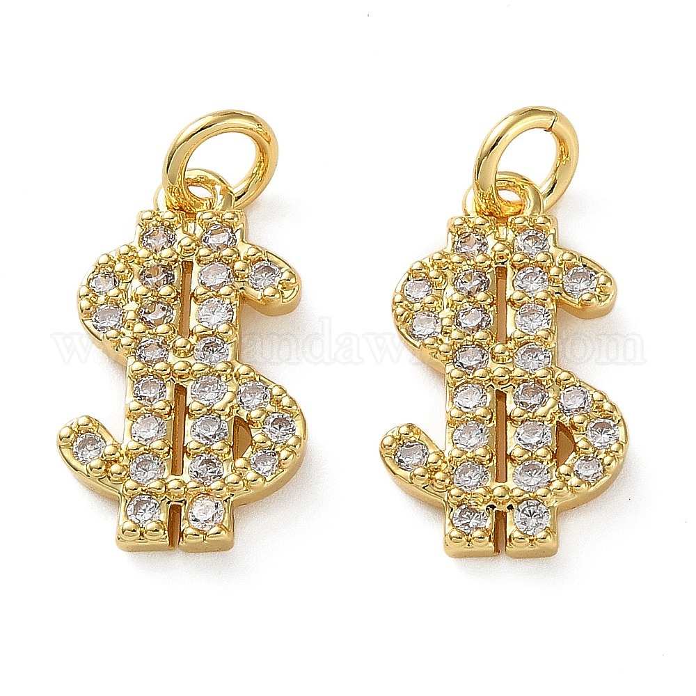 Латунные микропаве прозрачные подвески с фианитом, подвески в виде знака доллара