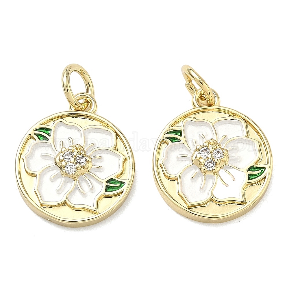 Латунные микро проложить кубического циркония подвески, с эмалью, долговечный, стойки покрытие, без свинца и без кадмия, плоский круглый с цветными чарами