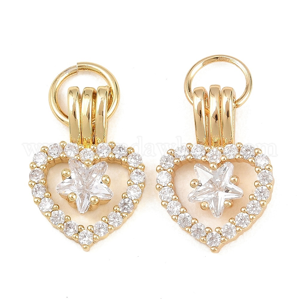 Латунные микропаве прозрачные подвески с фианитом, сердце прелести