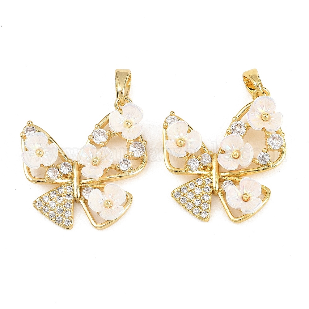 Латунные микропаве прозрачные подвески с фианитом, cmолой, бабочки прелести