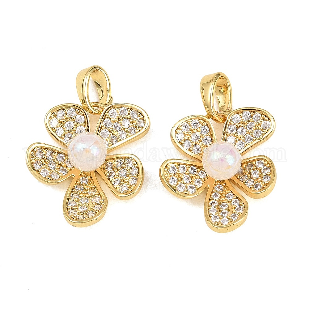 • Золотой Латунные микропаве прозрачные подвески с фианитом, с пластиковой жемчужины, , золотые, 17x14.5x5.5 мм, отверстие : 5x3 мм