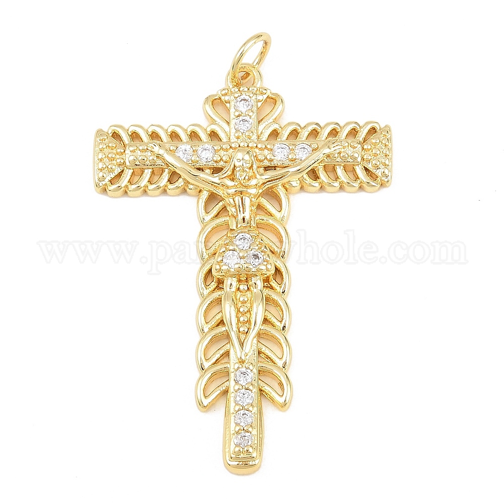 • Золотой Латунные микропаве прозрачные подвески с фианитом, крест прелести, золотые, 43x30x5.5 мм, Перейти кольцо: 6.5x1 мм, внутренний диаметр: 4 мм