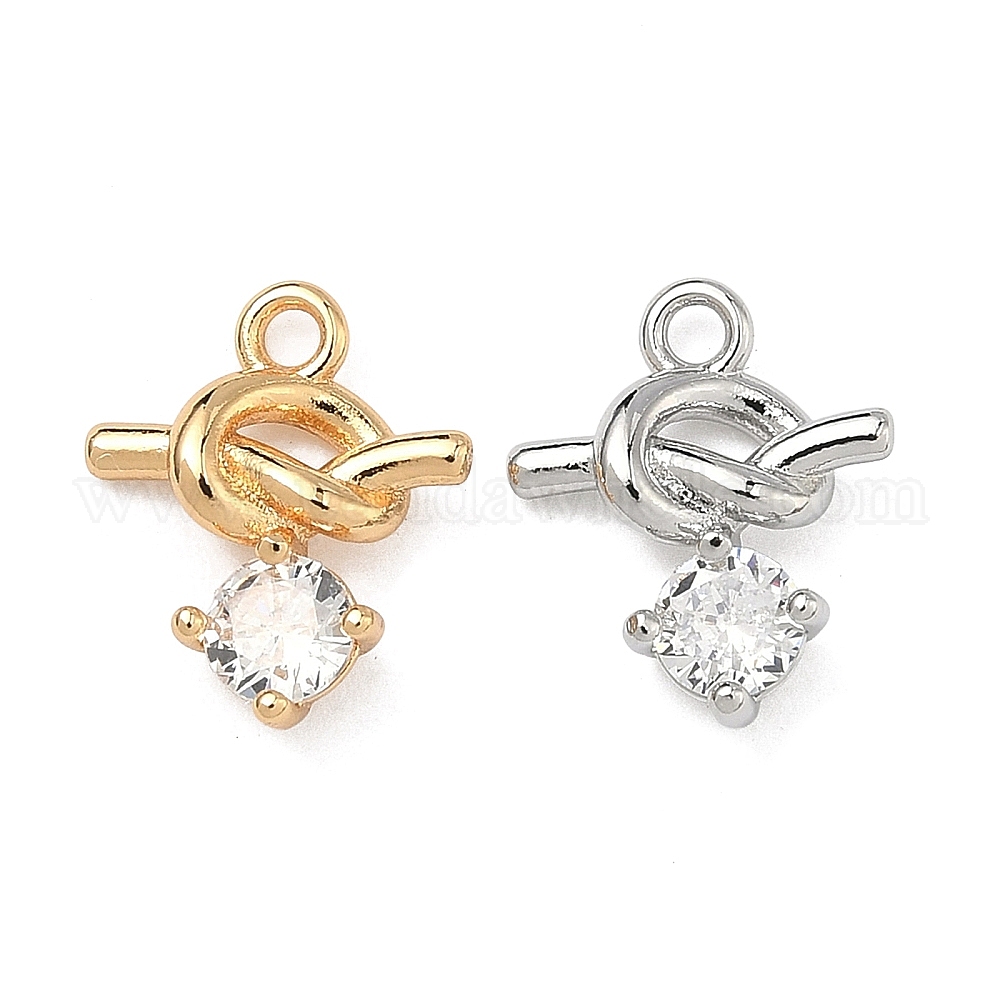 • Настоящее золото 18K Латунные микропаве прозрачные подвески с фианитом, подвески в виде закрученного узла и сердца, реальный 18 k позолоченный, 12.5x10x3 мм, отверстие : 1.5 мм