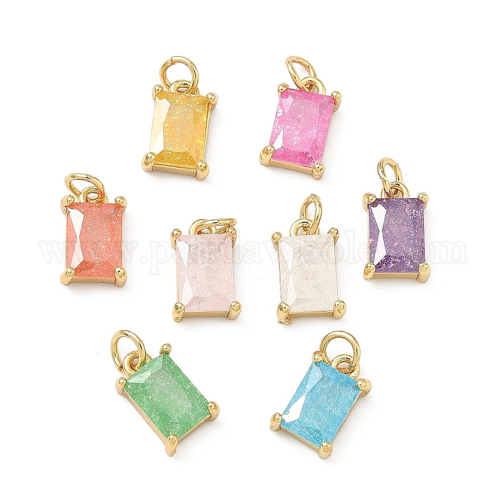 • (52) Непрозрачная лаванда Кулон из циркония, прямоугольник амулеты, без свинца и без кадмия, стойки покрытие, долговечный, реальный 18 k позолоченный, разноцветные, 9.5x6x3 мм, Перейти кольцо: 4x0.8 мм, 2.5 мм внутренним диаметром