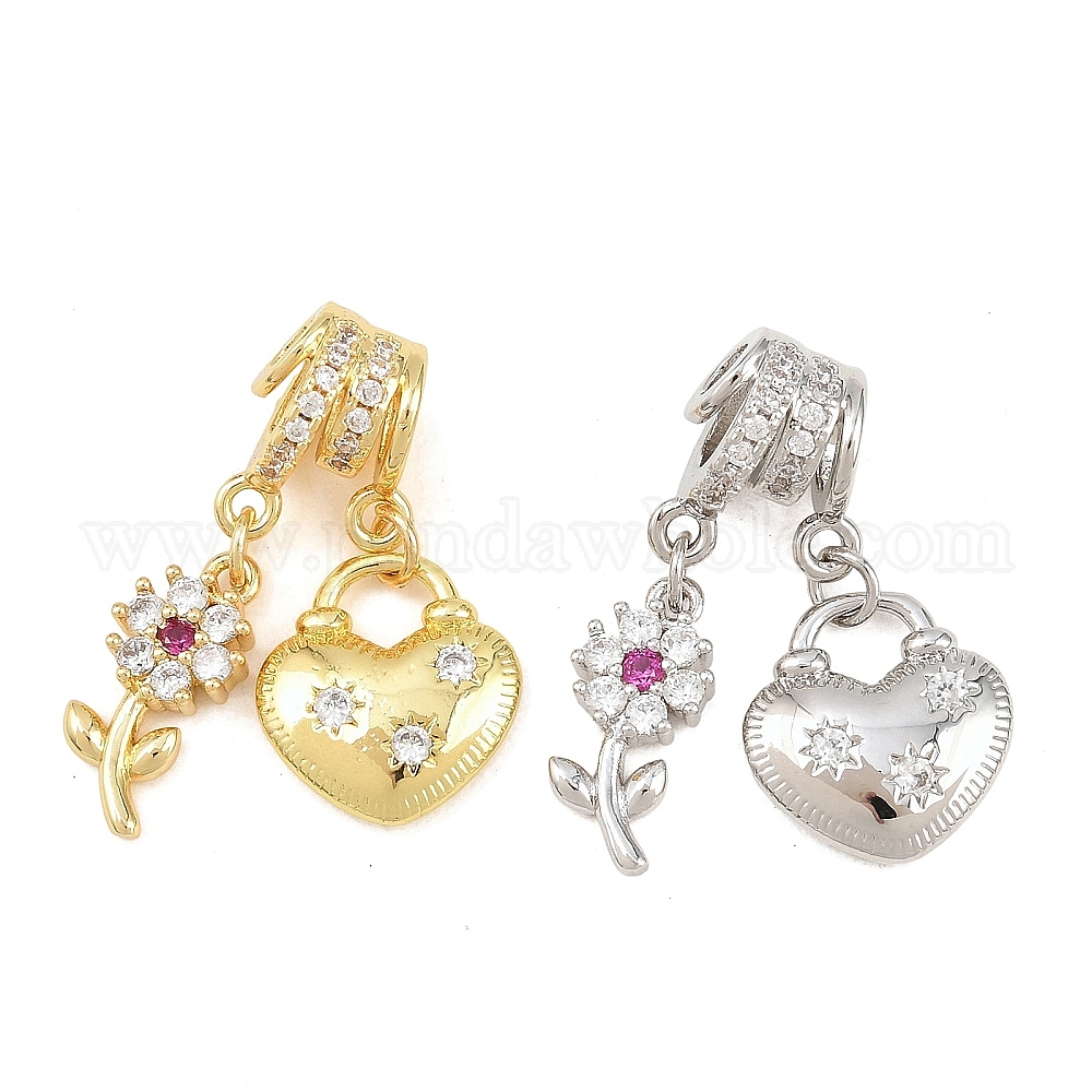 Латунные микро проложить кубического циркония подвески, цветок с подвесками в виде сердечек, без кадмия и без свинца, стойки покрытие, долговечный