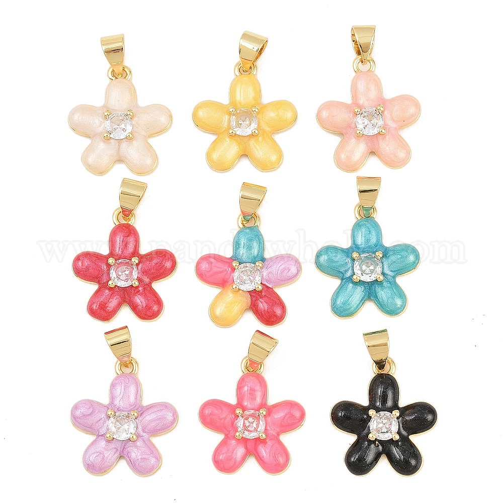 Латунные микропаве прозрачные подвески с фианитом, с эмалью, , долговечный, стойки покрытие, без свинца и без кадмия, реальный 18 k позолоченный
