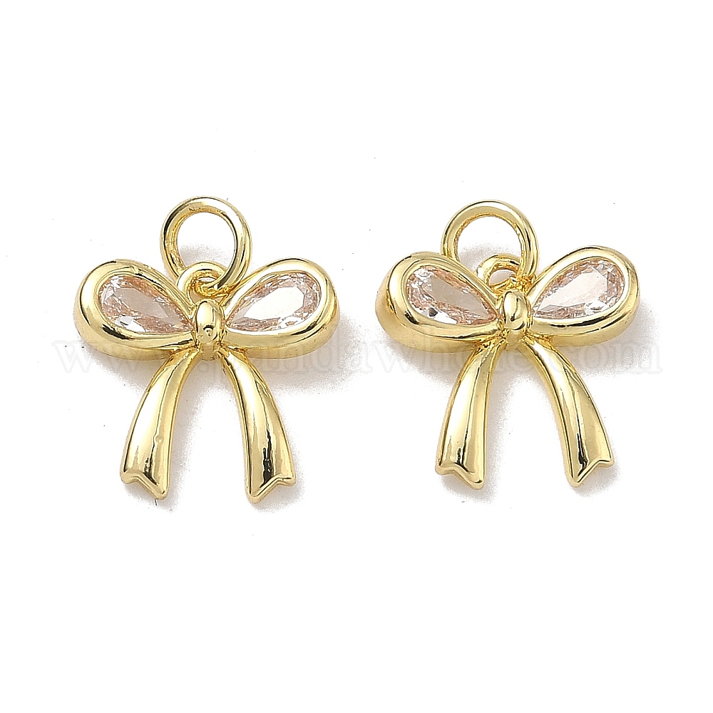 Латунные микропаве прозрачные подвески с фианитом, стойки покрытие, долговечный, без свинца и без кадмия, бантом прелести