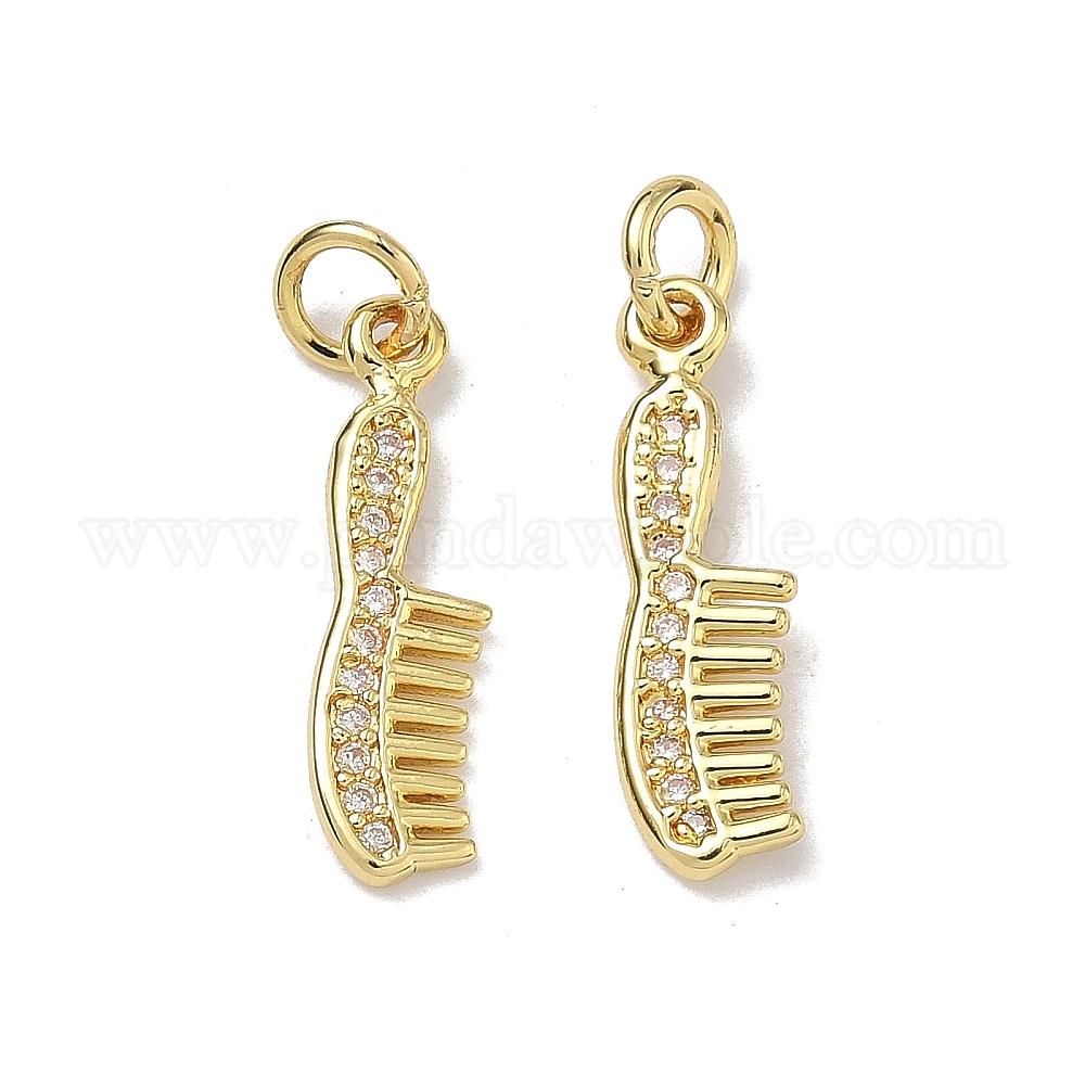 • Настоящее золото 18K Латунные микропаве прозрачные подвески с фианитом, стойки покрытие, долговечный, без свинца и без кадмия, подвеска в виде гребня, реальный 18 k позолоченный, 19x5.5x1.5 мм, Перейти кольцо: 5x1 мм, внутренний диаметр: 3.3 мм
