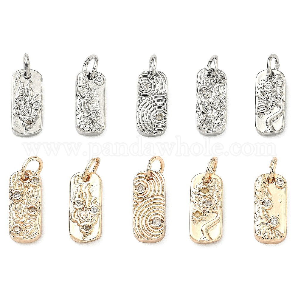 • Настоящее золото 14K Подвески из прозрачного кубического циркония с микропаве в виде пяти элементов, выполненные в тематике пяти элементов., прямоугольник с металлическими подвесками, реальный 14 k позолоченный, 10.5x4.5x2 мм, Перейти кольцо: 4x0.7 мм, внутренний диаметр: 2.5 мм
