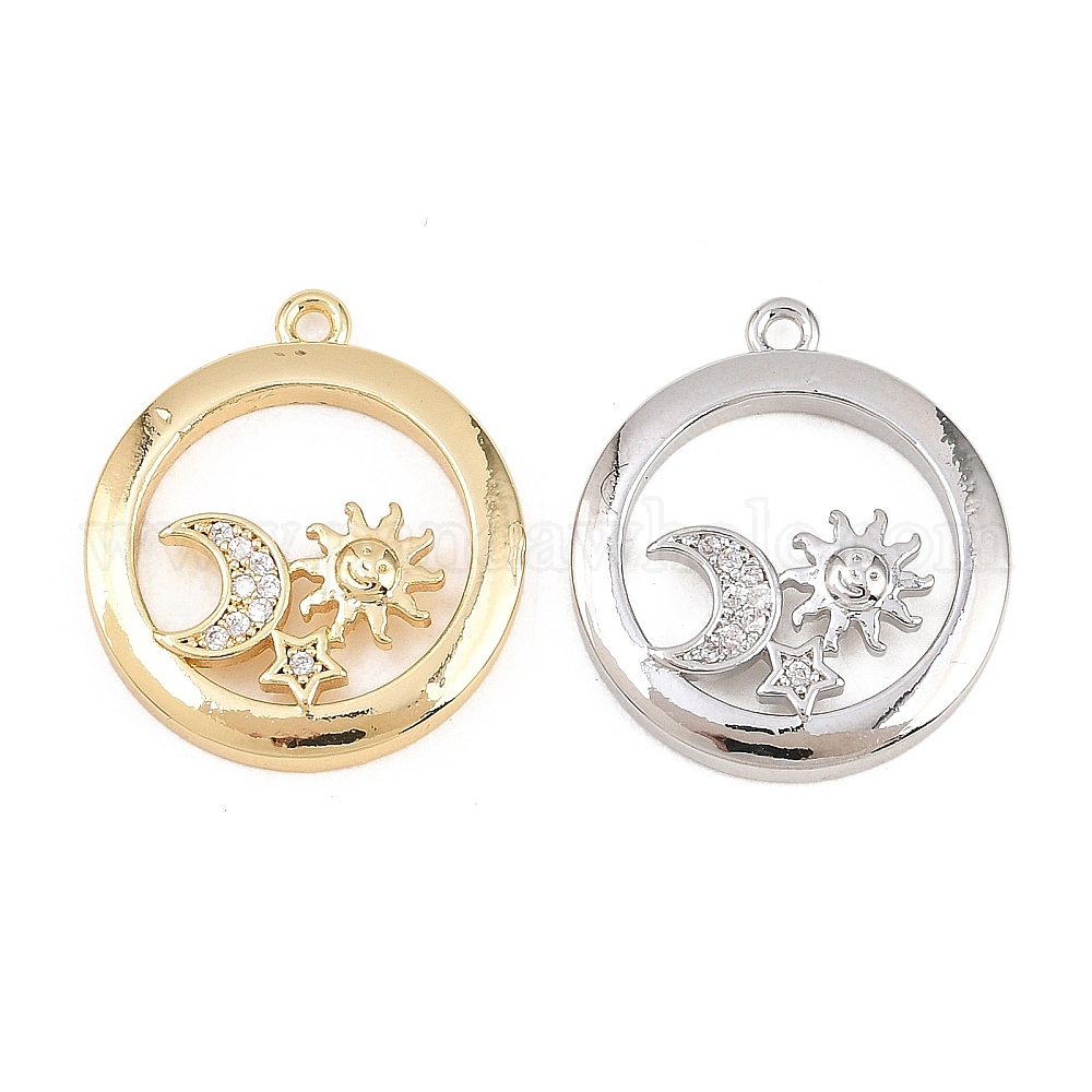 Осенние латунные подвески с микропаве из прозрачного кубического циркония, солнце с лунными чарами