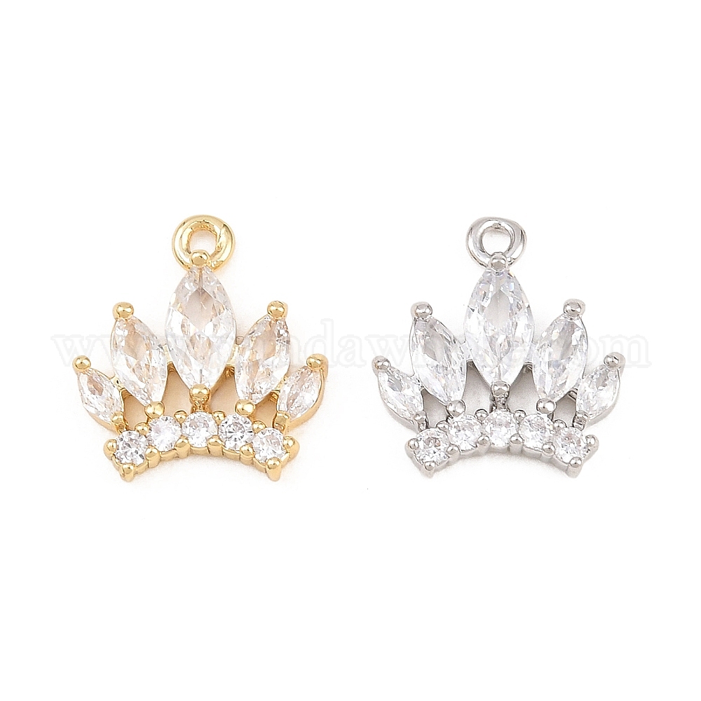 Латунные микропаве прозрачные подвески с фианитом, корона прелести