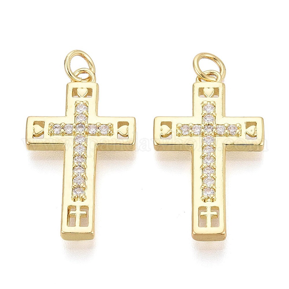 Религиозные латунные подвески с микропаве из прозрачного кубического циркония, крест прелести